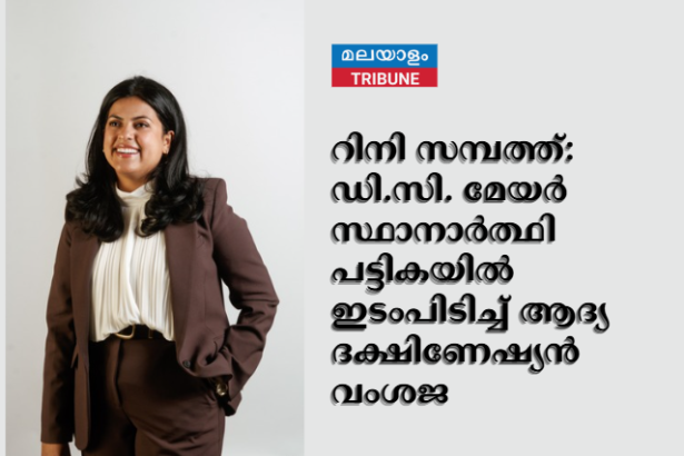 വാഷിംഗ്ടൺ ഡി സി :ഡി.സി. മേയർ സ്ഥാനാർത്ഥി പട്ടികയിൽ ഇടംപിടിച്ച് ആദ്യ ദക്ഷിണേഷ്യൻ വംശജ റിനി സമ്പത്ത്. വാഷിംഗ്ടൺ ഡി.സി.യുടെ രാഷ്ട്രീയ ചരിത്രത്തിൽ പുതിയ നാഴികക്കല്ല് കുറിച്ച് മലയാളി വേരുകളുള്ള റിനി സമ്പത്ത് മേയർ സ്ഥാനാർത്ഥി പട്ടികയിൽ ഇടംപിടിച്ചു. ഈ നേട്ടം…