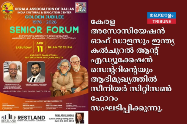 Community ഡാലസിൽ ചരിത്രം കുറിച്ചു കേരള അസോസിയേഷന്റെ പ്രഥമ 'മീഡിയ & ബിസിനസ് ഫോറം' സമാപിച്ചു , and P.P Cherian March 16, 2026
