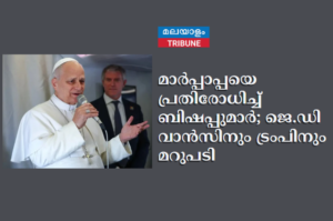 ന്യൂയോർക് :യുദ്ധത്തിനെതിരെയുള്ള പോപ്പ് ലിയോ പതിനാലാമന്റെ പരാമർശങ്ങളെ വിമർശിച്ച വൈസ് പ്രസിഡന്റ് ജെ.ഡി വാൻസിനും പ്രസിഡന്റ് ട്രംപിനുമെതിരെ അമേരിക്കൻ കത്തോലിക്കാ ബിഷപ്പുമാർ രംഗത്തെത്തി. യു.എസ് കത്തോലിക്കാ ബിഷപ്പുമാരുടെ ഡോക്ട്രിൻ കമ്മിറ്റി ചെയർമാൻ ബിഷപ്പ് ജയിംസ് മാസ, വൈസ് പ്രസിഡന്റ് ജെ.ഡി വാൻസിന്റെ…