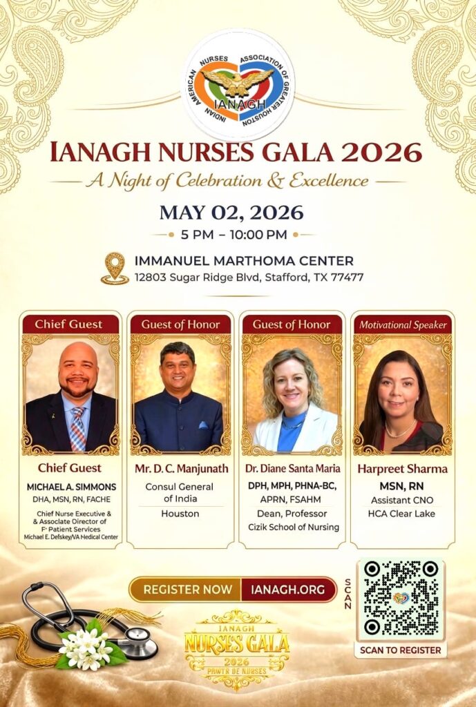 സ്റ്റാഫോർഡിലെ (Stafford, TX) ഇമ്മാനുവൽ സെന്റർ അന്നേദിവസം വിസ്മയ കാഴ്ചകൾ ഒരുക്കും.എന്നും ആശുപത്രികളിലെ മോണിട്ടറുകളുടെ ശബ്ദങ്ങൾ കേട്ട് കൊണ്ടിരുന്ന നഴ്സുമാരുടെ കാതുകളിൽ അന്നേ ദിവസനം ചിരികളുടെയും സംഗീതത്തിന്റെയും അലയൊലികൾ ഉയരും. ആ ദിവസം തന്നെ ഇന്ത്യൻ അമേരിക്കൻ നഴ്സസ് അസോസിയേഷൻ ഓഫ് ഗ്രേറ്റർ ഹൂസ്റ്റൺ (IANAGH) ൻ്റെ 32-ാമത് വാർഷിക ഗാല നൈറ്റിൻ്റെ കൊടി അവിടെ ഉയരും
