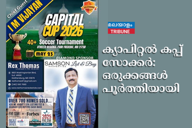 വാഷിംഗ്ടൺ ഡിസി: മേരിലാൻഡ് സ്ട്രൈക്കേഴ്സ് മെമ്മോറിയൽ വീക്കെൻഡായ മെയ് 23 ന് നടത്തുന്ന മൂന്നാമത്‌ നോർത്ത് അമേരിക്കൻ ക്യാപിറ്റൽ കപ്പ് സോക്കർ ടൂർണമെന്റിനുള്ള ഒരുക്കങ്ങൾ പൂർത്തിയായതായി സംഘാടകർ അറിയിച്ചു .