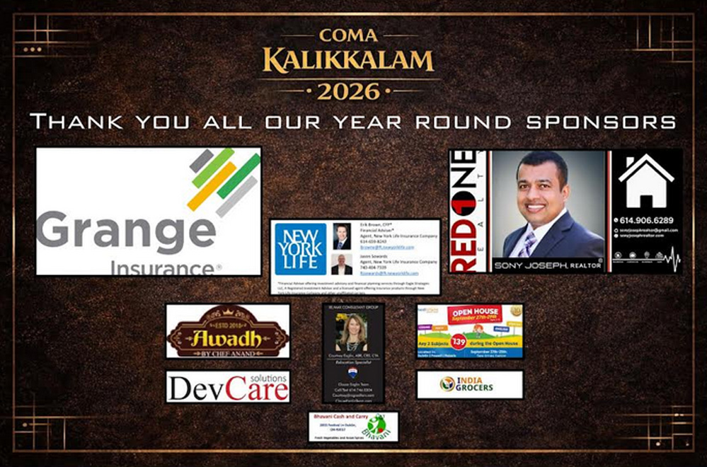 പരിപാടിയുടെ പ്രധാന സ്പോൺസറായ Pizza Twist, Powell, Ohio വേദിയിൽ ഭക്ഷണ സ്റ്റാൾ ഒരുക്കും. ഇന്ത്യൻ രുചികളുള്ളതും പരമ്പരാഗതവുമായ വിവിധ പിസ്സകൾ ഇവിടെ ലഭ്യമാകും. സഹ സ്പോൺസറായ റിയൽറ്റർ സ്റ്റാൻലി സെക്കറിയയുഡെ പിന്തുണയും പരിപാടിക്ക് ലഭിച്ചിട്ടുണ്ട്.