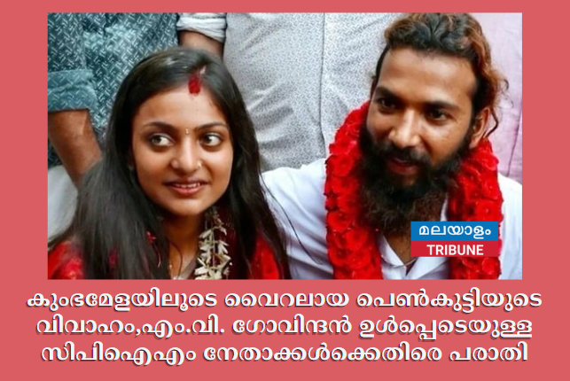 തിരുവനന്തപുരം: കുംഭമേളയിലൂടെ വൈറലായ പെൺകുട്ടിയുടെ വിവാഹം നടത്തിക്കൊടുക്കാൻ കൂട്ടുനിന്നു എന്നാരോപിച്ച് സിപിഐഎം ഉന്നത നേതാക്കൾക്കെതിരെ പോലീസിൽ പരാതി. സിപിഐഎം സംസ്ഥാന സെക്രട്ടറി എം.വി. ഗോവിന്ദൻ, മന്ത്രി വി. ശിവൻകുട്ടി, എ.എ. റഹീം എംപി എന്നിവർക്കെതിരെ നടപടി വേണമെന്ന് ആവശ്യപ്പെട്ട് യൂത്ത് കോൺഗ്രസ് കുന്നംകുളം നിയോജകമണ്ഡലം വൈസ് പ്രസിഡന്റ് വിഘ്നേശ്വര പ്രസാദാണ് പരാതി നൽകിയത്.
