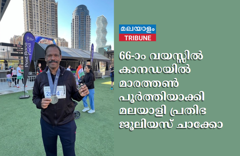 മിസിസാഗ (കാനഡ): പ്രായം വെറുമൊരു അക്കമാണെന്ന് തെളിയിച്ചുകൊണ്ട് 66-കാരനായ ജൂലിയസ് ചാക്കോ മിസിസാഗ മാരത്തണിൽ (21 കിലോമീറ്റർ) ശ്രദ്ധേയമായ നേട്ടം കൈവരിച്ചു. ഏപ്രിൽ 26 ഞായറാഴ്ച നടന്ന ‘റൺ യുവർ സ്റ്റോറി 2026’ എന്ന പരിപാടിയിൽ ആയിരത്തിമുന്നൂറിലധികം പേർക്കൊപ്പമാണ് അദ്ദേഹം മത്സരിച്ചത്.