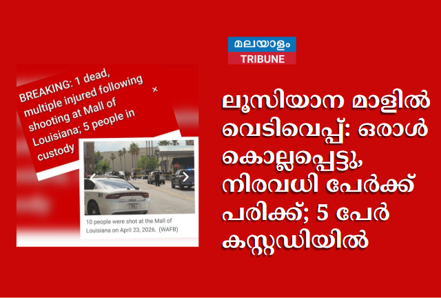 ലൂസിയാന മാളിൽ വെടിവെപ്പ്: ഒരാൾ കൊല്ലപ്പെട്ടു, നിരവധി പേർക്ക് പരിക്ക്; 5 പേർ കസ്റ്റഡിയിൽ