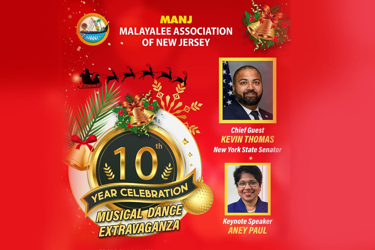 മലയാളീ അസോസിയേഷൻ ഓഫ് ന്യൂ ജേഴ്സി(മഞ്ച് ) യുടെ പത്താമത് വാർഷികം ജനുവരി 20 ശനിയാഴ്ച.വെകുന്നേരം 5 മണി മുതൽ ELMAS , Parsippany-Troy Hills, NJ വെച്ച് അതി മനോഹരമായ വിവിധ പരിപാടികളോട് ആഘോഷിക്കുന്നു. സ്റ്റേറ്റ് സെനറ്റർ കെവിൻ തോമസ് വാർഷിക ആഘോഷം ഉൽഘാടനം ചെയ്യുന്നതും കൗണ്ടി ലെജിസ്ലേറ്റജർ ആനി പോൾ മുഖ്യ പ്രഭാഷണം നടത്തും.