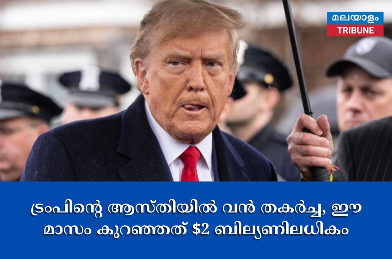 ന്യൂയോർക് :ടോപ്ലൈൻ മുൻ പ്രസിഡൻ്റ് ഡൊണാൾഡ് ട്രംപിൻ്റെ ആസ്തി വ്യാഴാഴ്ച 475 മില്യൺ ഡോളർ കുറഞ്ഞു, ട്രംപ് മീഡിയയുടെ ഓഹരികൾ സ്ലൈഡ് തുടരുന്നു, ഇത് സോഷ്യൽ മീഡിയ കമ്പനിയിലെ അദ്ദേഹത്തിൻ്റെ ഓഹരി മൂല്യം ഈ മാസം 2 ബില്യൺ ഡോളറിലധികം കുറഞ്ഞു.