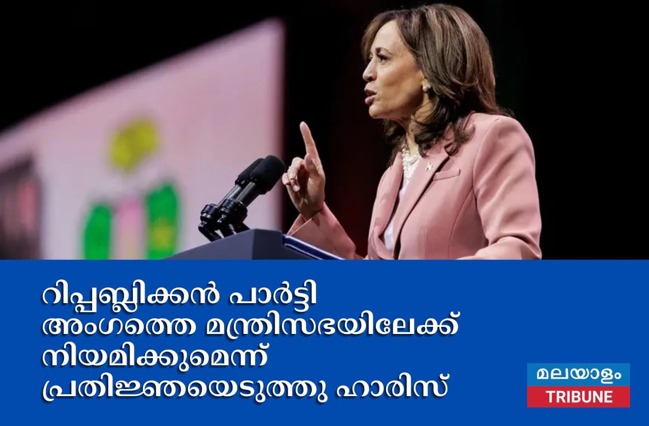 വാഷിംഗ്ടൺ ഡി സി :വൈസ് പ്രസിഡൻ്റ് കമലാ ഹാരിസ്, തിരഞ്ഞെടുക്കപ്പെട്ടാൽ ഒരു റിപ്പബ്ലിക്കനെ തൻ്റെ കാബിനറ്റിലേക്ക് നിയമിക്കുമെന്ന് പ്രതിജ്ഞയെടുത്തു, ഓഫീസിലായിരിക്കുമ്പോൾ വ്യത്യസ്ത വീക്ഷണങ്ങളിൽ നിന്ന് കേൾക്കുന്നത് നിർണായകമാണെന്ന് താൻ വിശ്വസിക്കുന്നുവെന്ന് പറഞ്ഞു.