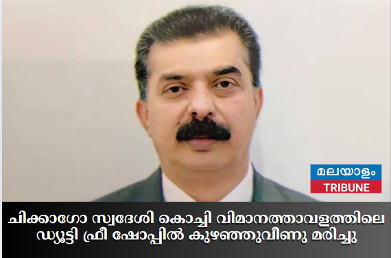 കൊച്ചി: കൊച്ചി രാജ്യാന്തര വിമാനത്താവളത്തിലെ ഡ്യൂട്ടി ഫ്രീ ഷോപ്പിൽ കോട്ടയം ഏറ്റുമാനൂർ സ്വദേശി ജിമ്മി സൈമൺ വെട്ടുകാട്ടിൽ (63) കുഴഞ്ഞുവീണു മരിച്ചു. അമ്മയെ കാണാൻ അതിരാവിലെ എമിറേറ്റ്സ് വിമാനത്തിൽ ആണ് അദ്ദേഹം കൊച്ചിയിൽ എത്തിയത്. ഡ്യൂട്ടി ഫ്രീ ഷോപ്പിൽ സാധനങ്ങൾ ഷോപ് ചെയ്തുകൊണ്ട് നിൽക്കുമ്പോഴാണ് കുഴഞ്ഞുവീണു മരിച്ചത്.