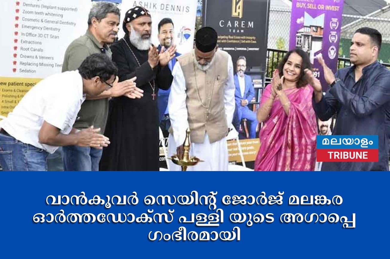 വാൻകൂവർ: സെൻറ് ജോർജ് മലങ്കര ഓർത്തഡോക്സ് ചർച്ച്, വാൻകൂവർ കഴിഞ്ഞ 13 വർഷമായി നടത്തിവരുന്ന ഫുഡ് ആൻഡ് കൾച്ചറൽ ഫെസ്റ്റ്; “മനുഷ്യവർഗത്തോടുള്ള ദൈവസ്നേഹം" എന്ന അർത്ഥം വരുന്ന "അഗാപ്പെ" , ഈ വർഷവും പൂർവാധികം ഭംഗിയായി നടത്തപ്പെട്ടു . ഇടവക വികാരി റവ. എംസി കുര്യാക്കോസ് റമ്പാൻ അധ്യക്ഷത വഹിച്ച ചടങ്ങിൽ, രചന സിംഗ് എംഎൽഎ (സറി-ഗ്ഗ്രീൻ ടിമ്പഴ്സ്) ഉദ്ഘാടനം നിർവഹിച്ചു. സെൻറ് തോമസ് മാർത്തോമാ ചർച്ച് വികാരി റവ. ഫാ. ഗീവർഗീസ് മാത്യു സ്നേഹ സന്ദേശം നൽകി. റവ. ഫാ. ഒ. തോമസ്, ബേബിച്ചൻ മട്ടമ്മേൽ (ട്രസ്റ്റി), കുര്യൻ വർക്കി (സെക്രട്ടറി) എന്നിവർ ഉദ്ഘാടന ചടങ്ങിൽ സന്നിഹിതരായിരുന്നു.