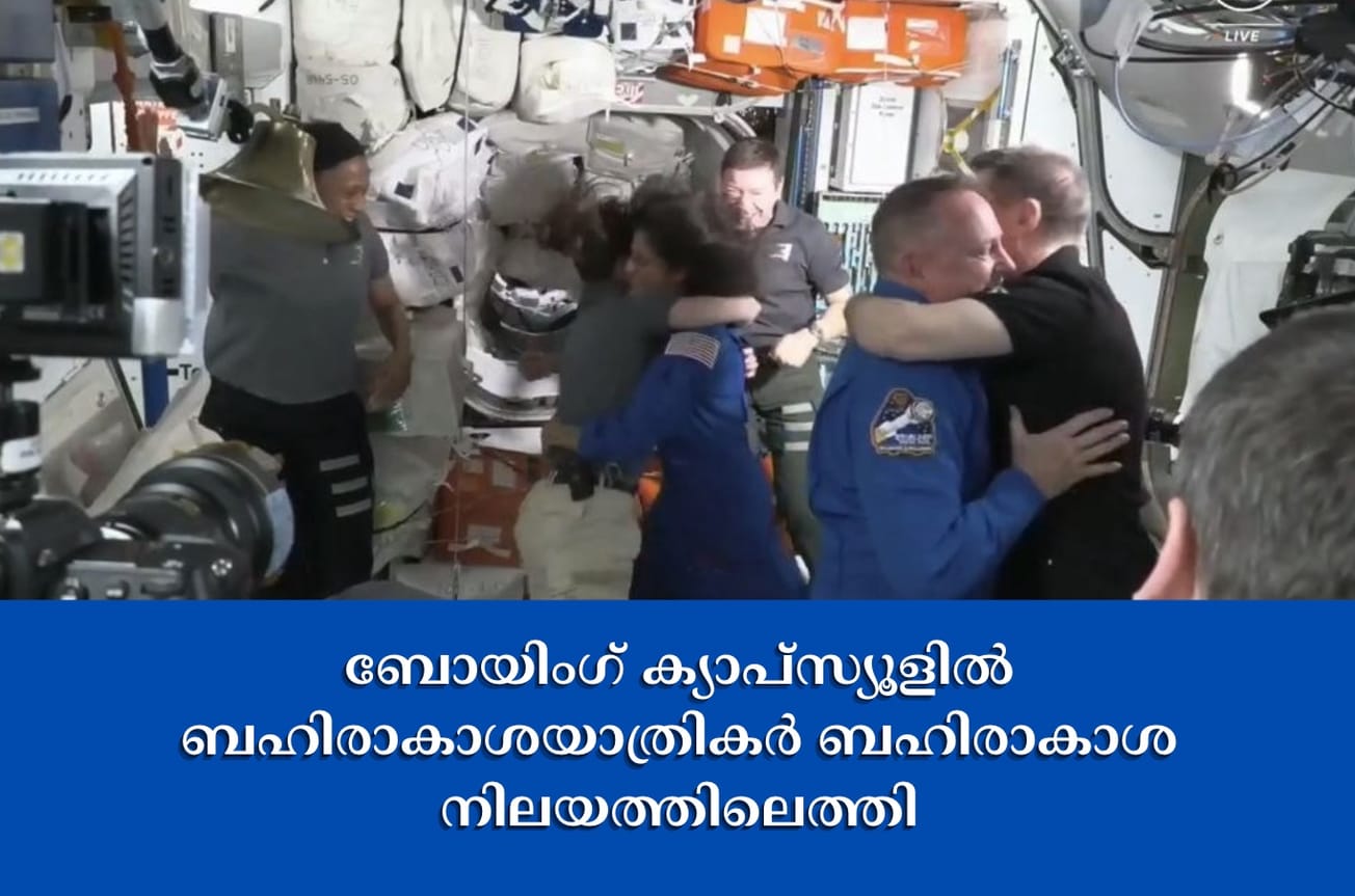 നാസയുടെ പരീക്ഷണ പൈലറ്റുമാരായ ബുച്ച് വിൽമോർ, സുനി വില്യംസ് എന്നിവരെ വഹിച്ചുകൊണ്ട് ബോയിങ്ങിൻ്റെ ബഹിരാകാശ യാത്രികൻ്റെ അരങ്ങേറ്റത്തിനായി ഇന്ത്യൻ മഹാസമുദ്രത്തിന് മുകളിലൂടെയുള്ള 260 മൈൽ ഉയരമുള്ള (420 കിലോമീറ്റർ ഉയരമുള്ള) ലിങ്ക് ഒരു ദിവസത്തിലധികം നീണ്ടുനിന്ന നാടകീയത അവസാനിച്ചു .അമേരിക്കൻ ബോയിംഗ് കമ്പനിയുടെ സ്റ്റാർലൈനർ ക്യാപ്സ്യൂളിൽ അന്താരാഷ്ട്ര ബഹിരാകാശ നിലയത്തിലെത്തിയ സുനി വില്യംസിനെയും ബുച്ച് വിൽമോറിനെയും ആലിംഗനം ചെയ്തും കരഘോഷത്തോടെയും സ്വീകരിച്ചു.