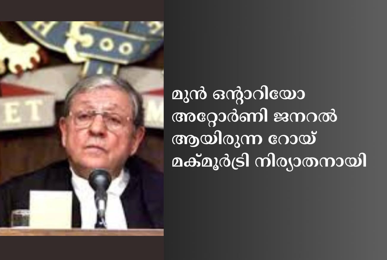 മുൻ ഒന്റാറിയോ അറ്റോർണി ജനറൽ റോയ് മക്മൂർട്രി അന്തരിച്ചു. 91 വയസ്സായിരുന്നു.