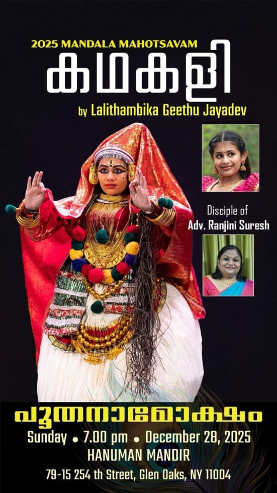 7 മുതൽ 8 വരെ കഥകളി – പൂതനാമോക്ഷം (ലളിതാംബിക, ഗീതു ജയദേവ്, മിസൗറി)
