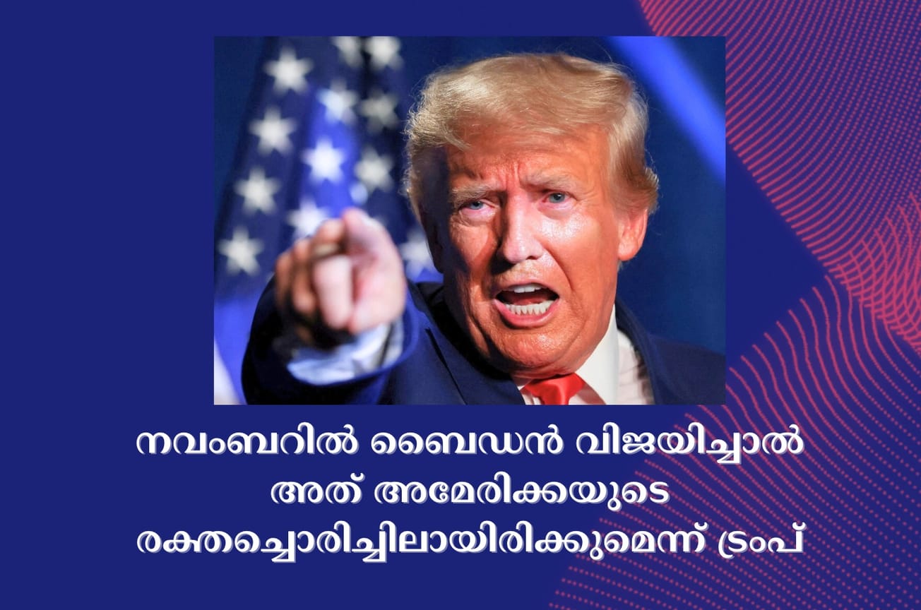 ഒഹായോ: നവംബറിൽ ബൈഡൻ വിജയിച്ചാൽ അത് അമേരിക്കയുടെ രക്തച്ചൊരിച്ചിലായിരിക്കുമെന്ന് ഡൊണാൾഡ് ട്രംപ് ശനിയാഴ്ച പറഞ്ഞു.“ഇപ്പോൾ, ഞാൻ തിരഞ്ഞെടുക്കപ്പെട്ടില്ലെങ്കിൽ, അത് ഒരു രക്തച്ചൊരിച്ചിലായിരിക്കും. അത് ഏറ്റവും കുറഞ്ഞതായിരിക്കും,” ഒഹായോയിലെ ഡെയ്ടണിന് സമീപം നടന്ന റാലിയിൽ ട്രംപ് പറഞ്ഞു. ."മുൻ പ്രസിഡൻ്റ് കൃത്യമായി എന്താണ് ഉദ്ദേശിച്ചതെന്ന് വ്യക്തമല്ലെങ്കിലും, ഓട്ടോമൊബൈൽ വ്യവസായത്തെക്കുറിച്ച് ട്രംപ് പരാതിപ്പെടുന്നതിനിടെയാണ് പരാമർശം.