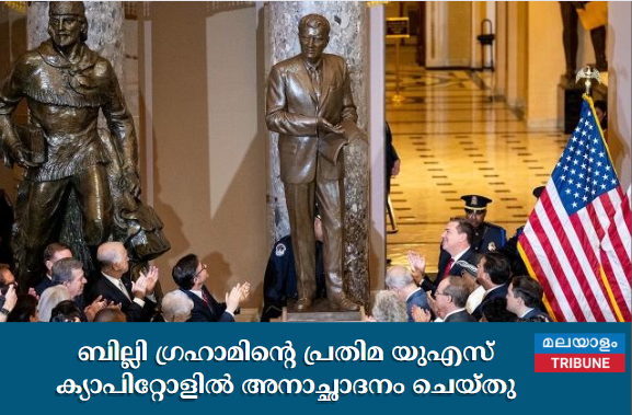 വാഷിംഗ്ടൺ ഡി സി : അന്തരിച്ച ബില്ലി ഗ്രഹാമിൻ്റെ പ്രതിമ യുഎസ് ക്യാപിറ്റോളിൽ വ്യാഴാഴ്ച അനാച്ഛാദനം ചെയ്തു. നോർത്ത് കരോലിനയിലെ സുവിശേഷകൻ അമേരിക്കയുടെ പാസ്റ്റർ എന്നാണ് അറിയപ്പെട്ടിരുന്നത്.