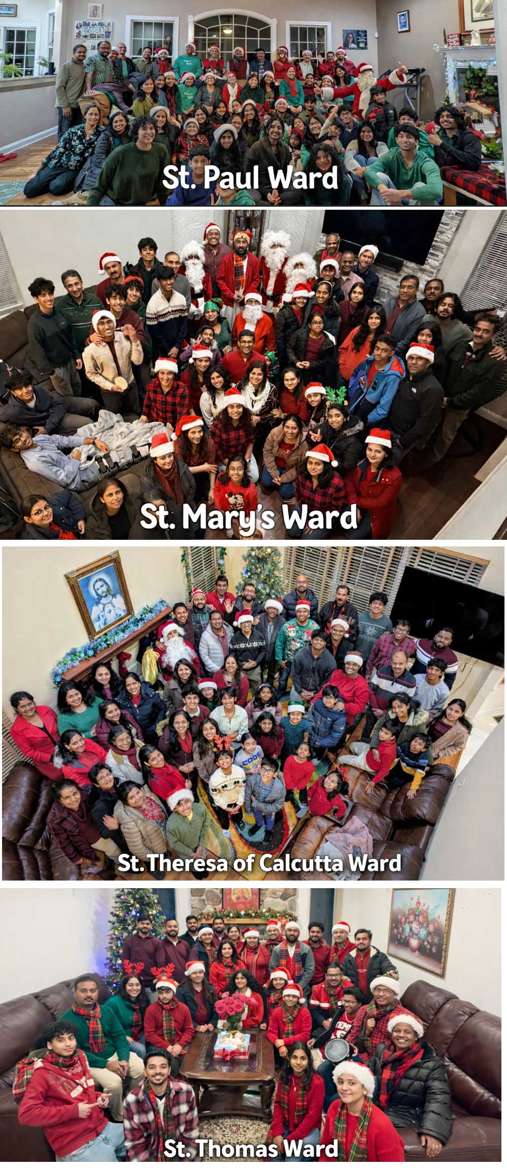 പ്രാർത്ഥനാപൂർവ്വം തുടങ്ങിയ ഭവനസന്ദർശനങ്ങളിൽ മലയാളത്തിലും ഇംഗ്ലീഷിലുമുള്ള ക്രിസ്മസ് ഗാനങ്ങൾ അലയടിച്ചു. സമ്മാനപ്പൊതികളുമായി എത്തിയ ക്രിസ്മസ് പാപ്പയും, പുൽക്കൂടിന്റെ പുണ്യസ്മരണയുണർത്തിയ നേറ്റിവിറ്റി ദൃശ്യങ്ങളും കുട്ടികൾക്കും മുതിർന്നവർക്കും ഒരുപോലെ ആവേശവും കൗതുകവുമായി.