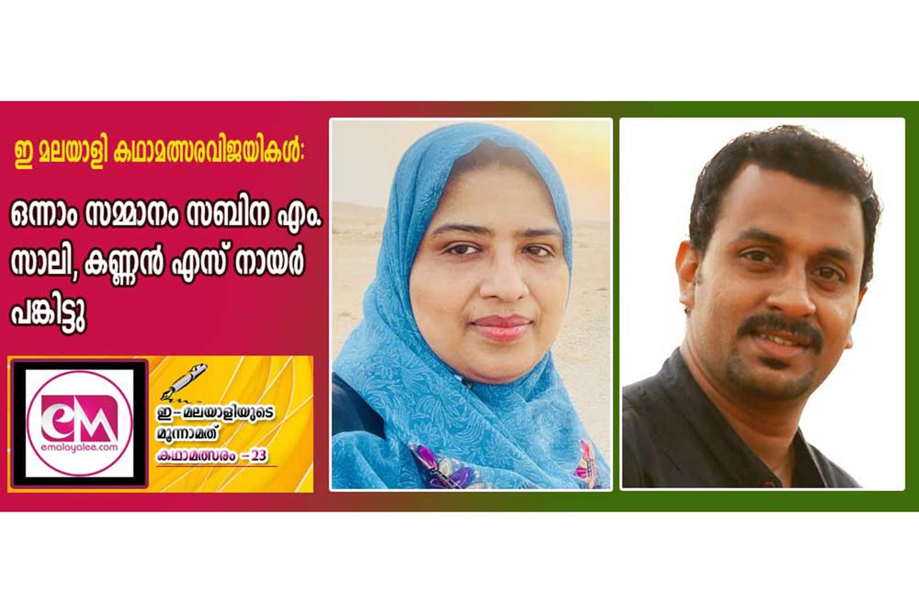 ഇ- മലയാളിയുടെ മൂന്നാമത് ആഗോള കഥാമത്സരത്തിൽ ഒന്നാം സമ്മാനം രണ്ടുപേർക്ക്. ലെസ്ബിയൻ കിളികൾ എന്ന കഥക്ക് സബീന എം സാലി, അർഥം എന്ന കഥക്ക് കണ്ണൻ എസ് നായർ (അംബിക കണ്ണൻ ബായ്) എന്നിവരാണ് സമ്മാനതുക 50,000 രൂപ പങ്കിട്ടത്.