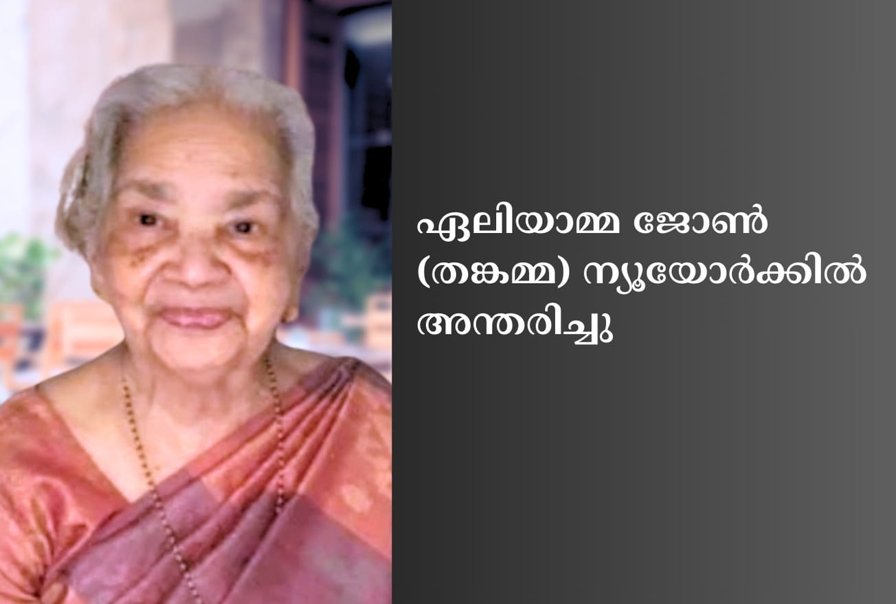 ന്യു യോർക്ക്: സേവനവും വിശ്വാസവും കൊണ്ട് സമ്പന്നമായ സംതൃപ്ത ജീവിതത്തിനുടമയായിരുന്നു ന്യു റോഷലിൽ അന്തരിച്ച ഏലിയാമ്മ ജോൺ (തങ്കമ്മ). 1930 ഒക്ടോബർ 21ന് തിരുവല്ലയിലെ കല്ലുങ്കലിൽ ജനിച്ചു.