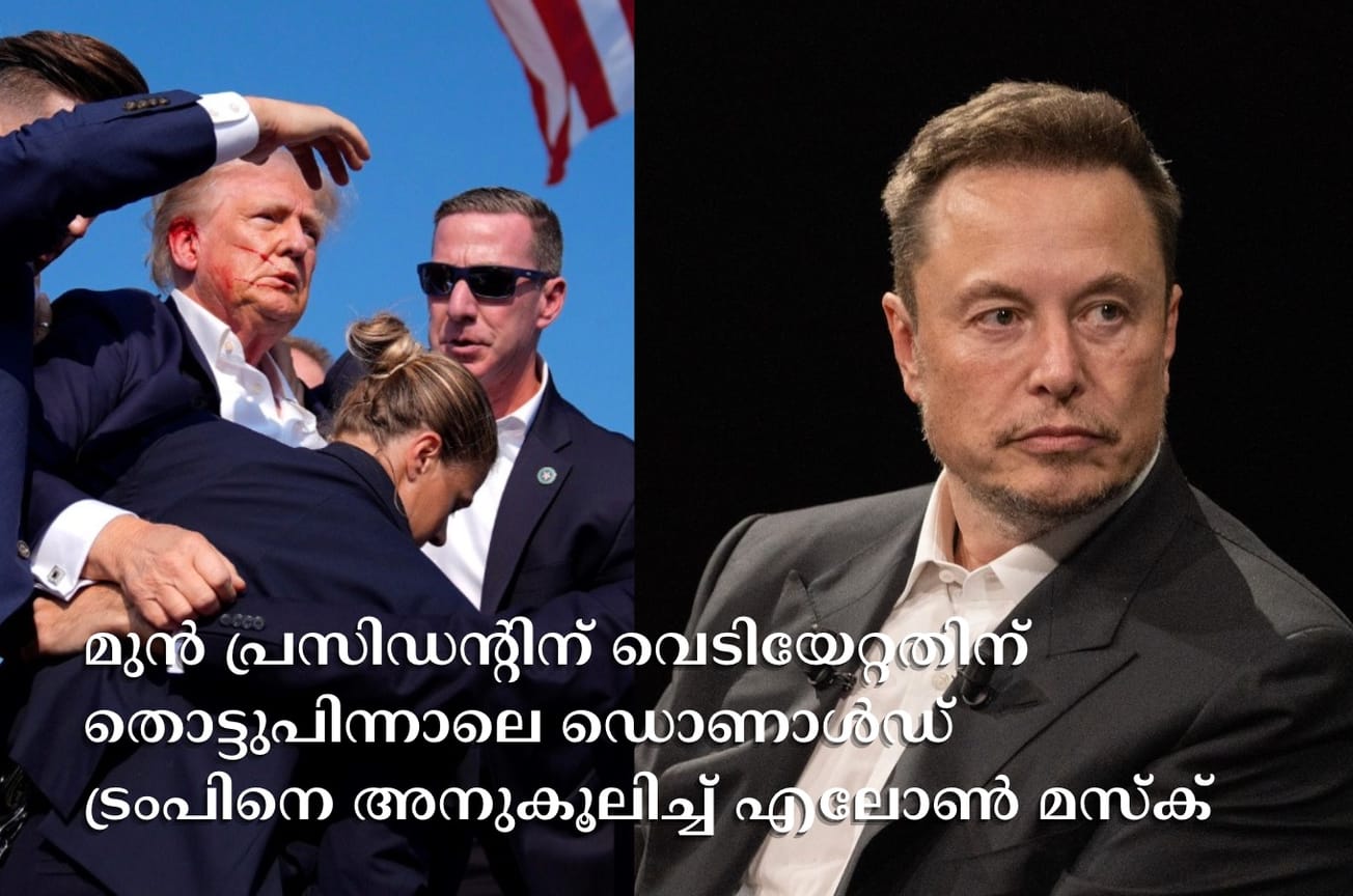 പെൻസിൽവാനിയ:പെൻസിൽവാനിയയിൽ നടന്ന റാലിയിൽ വെടിയേറ്റ് മുൻ പ്രസിഡൻ്റിന് പരിക്കേറ്റതിനെത്തുടർന്ന് ട്രംപിനെ പൂർണമായി അംഗീകരിക്കുന്നതായി ടെസ്ല സിഇഒ എലോൺ മസ്ക് പറഞ്ഞു.