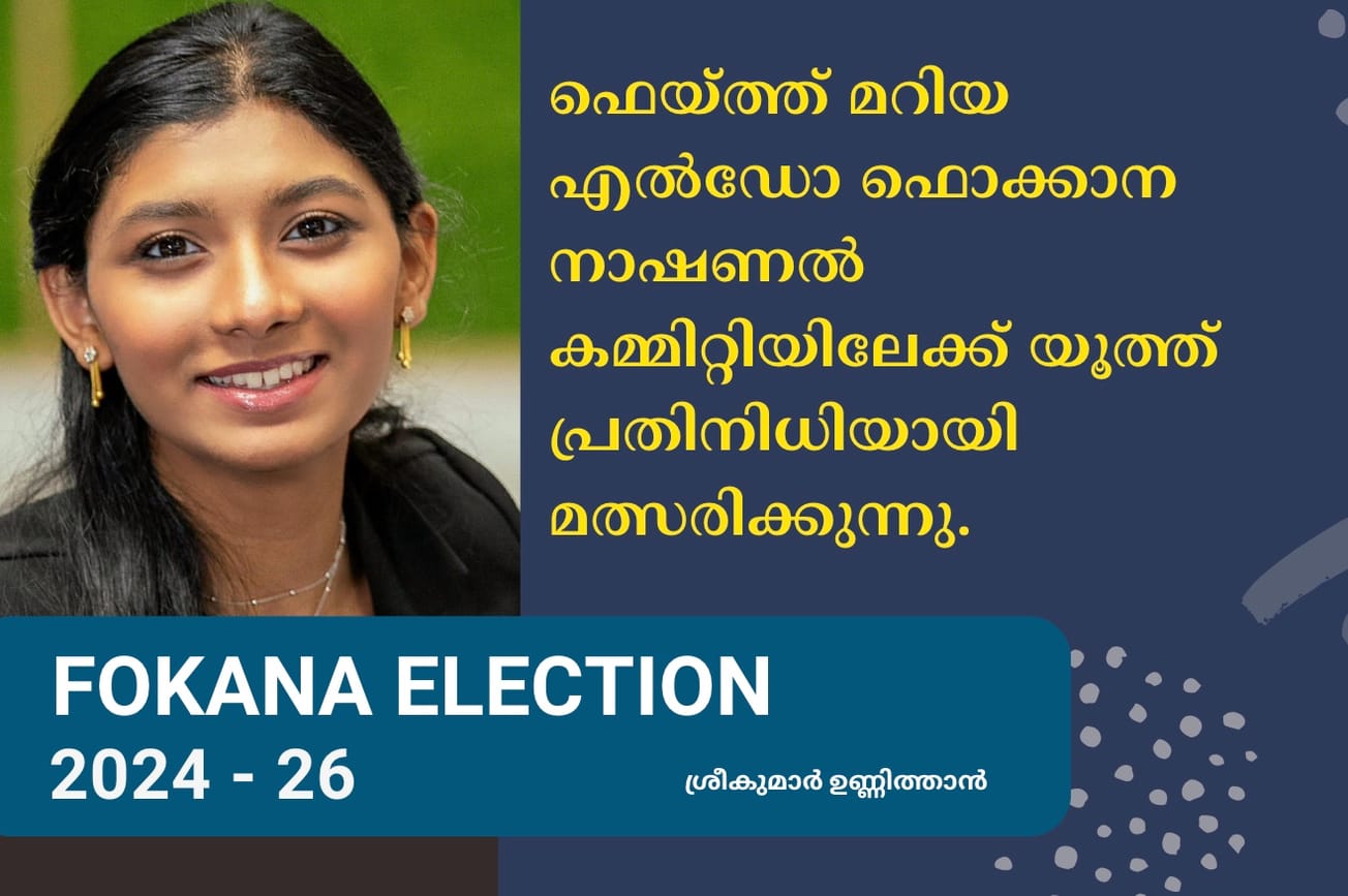 ഫ്ലോറിഡ :സജിമോൻ നേതൃത്വം നൽകുന്ന ഡ്രീം ടീമിന്റെ ഭാഗമായി ഫൊക്കാനയുടെ 2024-2026 ഭരണസമിതിയിൽ നാഷണൽ കമ്മിറ്റിയിലേക്ക് യൂത്ത് പ്രതിനിധിയായി കലാ- സംസ്കാരിക പ്രവർത്തകയായ ഫെയ്ത്ത് മറിയ എൽഡോ മത്സരിക്കുന്നു.