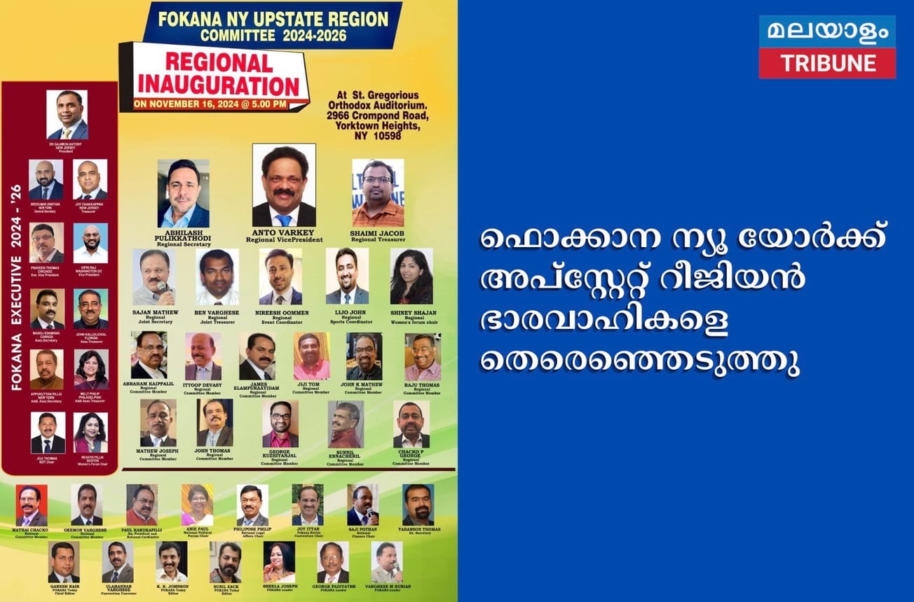 പുതിയതായി തെരെഞ്ഞെടുത്ത റീജണൽ ഭാരവാഹികളെ പ്രസിഡന്റ് സജിമോൻ ആന്റണി , സെക്രട്ടറി ശ്രീകുമാർ ഉണ്ണിത്താൻ , ട്രഷർ ജോയി ചാക്കപ്പൻ ,എക്സി .വൈസ് പ്രസിഡന്റ് പ്രവീൺ തോമസ് , വൈസ് പ്രസിഡന്റ് വിപിൻ രാജു, ജോയിന്റ് സെക്രട്ടറി മനോജ് ഇടമന, ജോയിന്റ് ട്രഷർ ജോൺ കല്ലോലിക്കൽ, അഡിഷണൽ ജോയിന്റ് സെക്രട്ടറി അപ്പുകുട്ടൻ പിള്ള, അഡിഷണൽ ജോയിന്റ് ട്രഷർ മില്ലി ഫിലിപ്പ് , വിമൻസ് ഫോറം ചെയർപേഴ്സൺ രേവതി പിള്ള , ട്രസ്റ്റീ ബോർഡ് ചെയർ ജോജി തോമസ്, ട്രസ്റ്റീ ബോർഡ് സെക്രട്ടറി ബിജു ജോൺ, റീജണൽ വൈസ് പ്രസിഡന്റ് ആന്റോ വർക്കി എന്നിവർ അഭിനന്ദിച്ചു.
