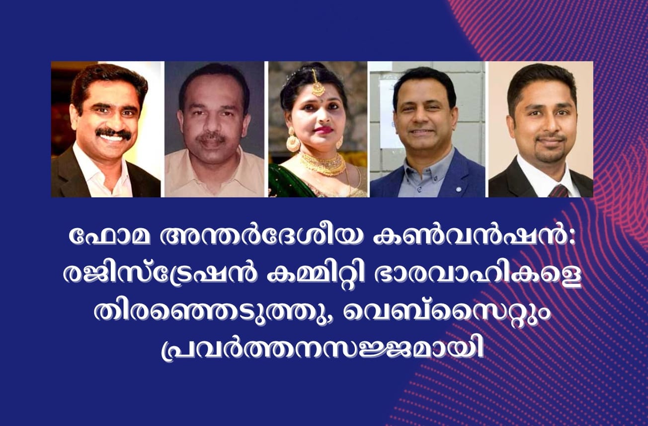 ഫെഡറേഷൻ ഓഫ് മലയാളി അസ്സോസിയേഷൻസ് ഓഫ് അമേരിക്കാസ് (ഫോമ) എട്ടാമത് അന്തർദേശീയ കൺവൻഷന്റെ ഭാഗമായുള്ള രജിസ്ട്രേഷൻ കമ്മിറ്റി ഭാരവാഹികളെ തിരഞ്ഞെടുത്തു. ഫോമ പ്രസിഡന്റ് ഡോ. ജേക്കബ് തോമസ്, ജനറൽ സെക്രട്ടറി ഓജസ് ജോൺ എന്നിവരാണ് ഇക്കാര്യം അറിയിച്ചത്. ഇതോടൊപ്പം തന്നെ കൺവെൻഷന്റെ ഭാഗമായുള്ള വെബ്സൈറ്റും പ്രവർത്തനസജ്ജമായതായും ഭാരവാഹികൾ വ്യക്തമാക്കി.
