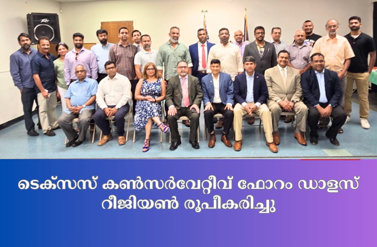 ഗാർലാൻഡ് (ഡാളസ്):ടെക്സസ് കൺസർവേറ്റീവ് ഫോറം ഡാളസ് റീജിയൺ രൂപീകരിച്ചു.ഗാർലാൻഡ് ഡാളസ് കേരള അസോസിയേഷൻ ഓഫീസിൽ ആഗസ്റ് 22 ഞായറാഴ്ച വൈകീട്ട് ചേർന്ന യോഗത്തിൽ സ്റ്റേറ്റ് കൺസർവേറ്റീവ് ഫോറം പ്രസിഡന്റ് ടോം വിരിപ്പൻ(ഹൂസ്റ്റൺ ) അധ്യക്ഷത വഹിച്ചു.റവ ഷാജി കെ ഡാനിയേലിന്റെ പ്രാർത്ഥനയോടെ ആരംഭിച്ച യോഗത്തിൽ സംസ്ഥാന ചെയര്മാന് ഡാൻ മാത്യൂസ് യോഗം വി ളിച്ചു ചേർത്തത്തിന്റെ വിവിധ വശങ്ങളെ കുറിച്ച് പ്രതിപാദിച്ചു .തുടർന്നു സാക്കി ജോസഫ് ടെക്സസ് കൺസർവേറ്റീവ് ഫോറം ഭാരവാഹികളെ സദസ്സിനു പരിചയപ്പെടുത്തി .