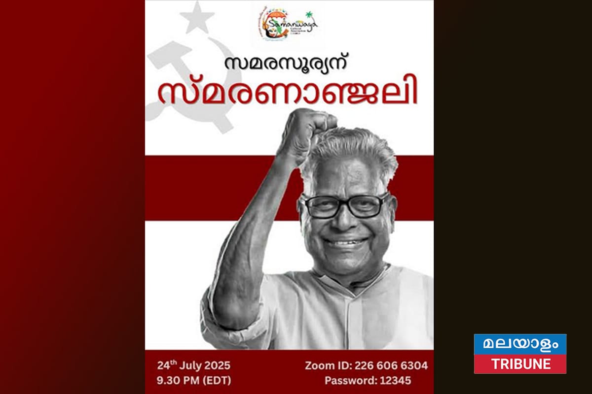 ചരിത്രത്തിലേക്ക് വിടവാങ്ങിയ സമരനായകന്, മുന് മുഖ്യമന്ത്രി സഖാവ് വി എസ് അച്യുതാനന്ദന് ആദരാഞ്ജലിയര്പ്പിച്ച് കാനഡയിലെ മലയാളികള്. സമന്വയ കാനഡ സംഘടിപ്പിച്ച ഓണ്ലൈനില് ചേര്ന്ന അനുശോചനയോഗത്തില് പുന്നപ്ര-വയലാര് സമരം പശ്ചാത്തലമാക്കിയ നോവല് ഉഷ്ണരാശിയുടെ രചയിതാവായ കെ വി മോഹന്കുമാര് ഐഎഎസ്, സിപിഐ എം പൊളിറ്റ് ബ്യൂറോ അംഗവും കര്ഷകസമരങ്ങളിലെ മുന്നിര പോരാളിയുമായ വിജു കൃഷ്ണന് എന്നിവര് പങ്കെടുത്തു.