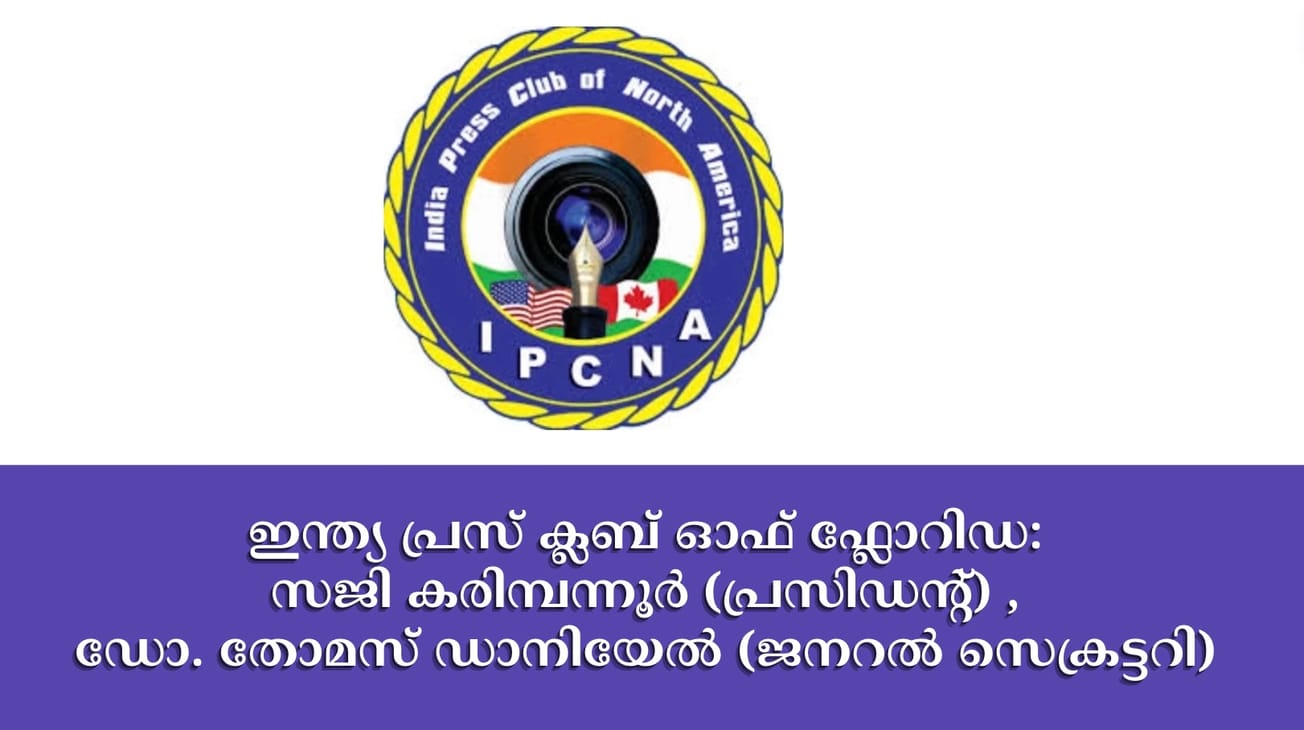 ഫ്ലോറിഡ: ഇന്ത്യ പ്രസ് ക്ലബ് ഓഫ് ഫ്ലോറിഡയുടെ പ്രഥമ ഭാരവാഹികളായി സജി കരിമ്പന്നൂർ പ്രസിഡൻ്റ് , ഡോ. തോമസ് ഡാനിയേൽ ,ജനറൽ സെക്രട്ടറി,ചാക്കോ കുര്യൻ, (ഓർലാൻഡോ) - വൈസ് പ്രസിഡൻ്റ്,സുനിൽ വല്ലത്തറ - ജോയിൻ്റ് സെക്രട്ടറി,, ഷിബു തണ്ടച്ചേരിൽ - ട്രഷറർ എന്നിവരെ തിരഞ്ഞെടുത്തു
