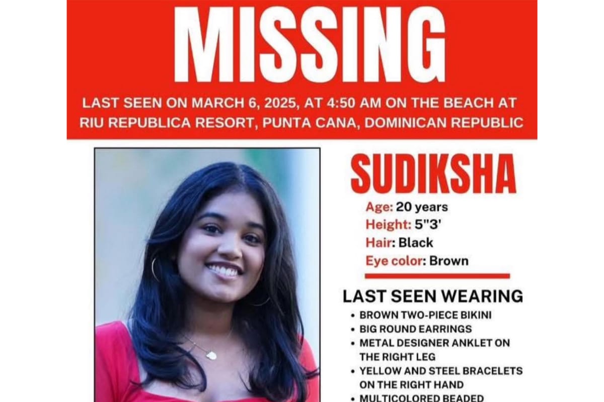 സുദീക്ഷ കൊണങ്കി, സഹപാഠികളോടൊപ്പം ഡൊമിനിക്കൻ റിപ്പബ്ലിക്കിലേക്കുള്ള വസന്തകാല അവധിക്കാല യാത്രയിലായിരുന്നു. റിസോർട്ട് പട്ടണമായ പുന്റ കാനയിൽ തന്റെ സുഹൃത്തുക്കളുടെ കൂട്ടത്തോടൊപ്പം സുദീക്ഷ ഉണ്ടായിരുന്നു, നാല് ദിവസം മുമ്പ് വ്യാഴാഴ്ച ബീച്ചിൽ നടക്കുമ്പോൾ അവസാനമായി കണ്ടു. അതിനുശേഷം ആരും അവളെ കാണുകയോ അവളെ കുറിച്ച് കേൾക്കുകയോ ചെയ്തിട്ടില്ല.