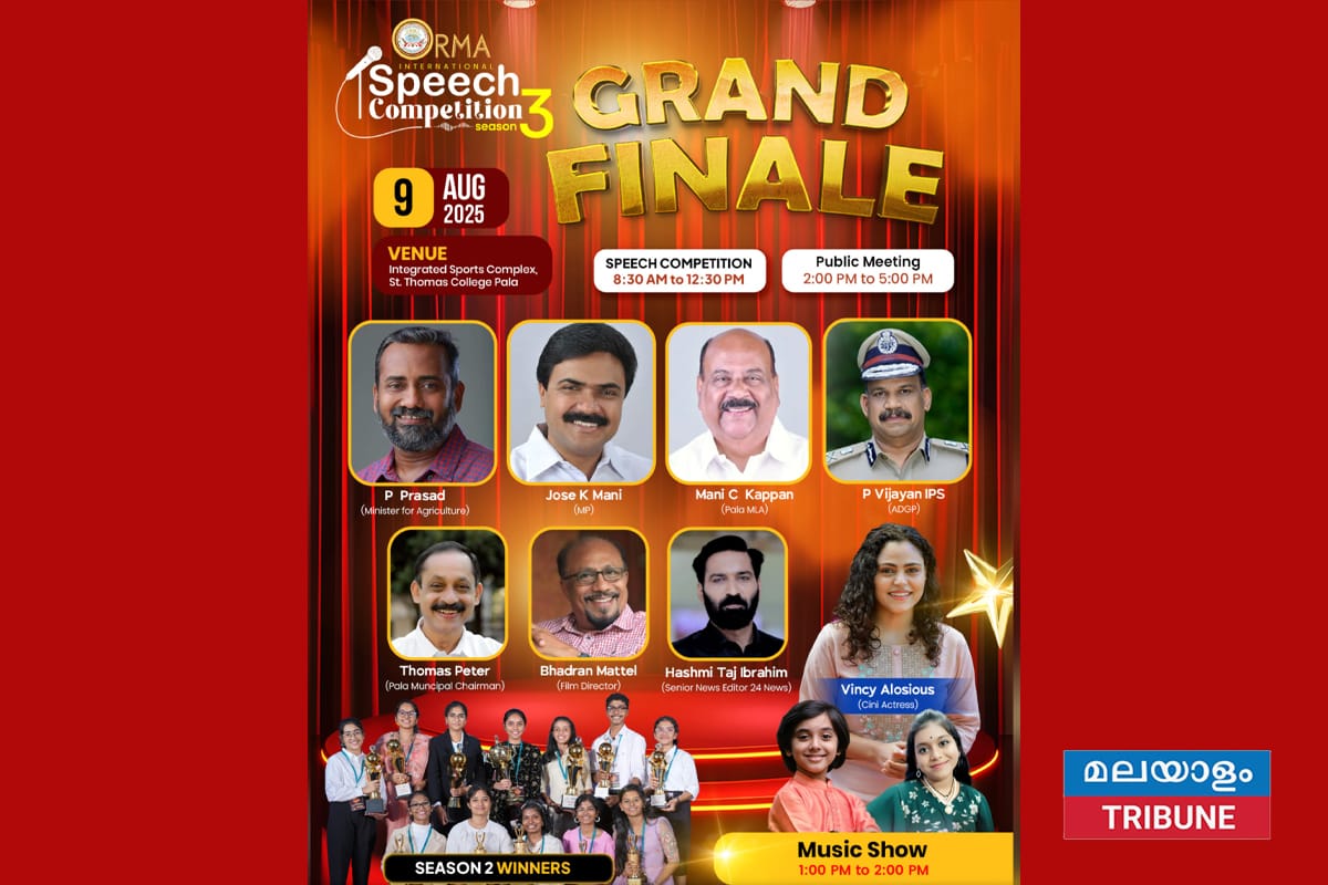 ഓര്മ്മ ഇന്റര്നാഷണല് (ഓവര്സീസ് റസിഡന്റ് മലയാളീസ് അസോസിയേഷന്) ടാലന്റ് പ്രൊമോഷന് ഫോറം സംഘടിപ്പിക്കുന്ന ഇന്റര്നാഷണല് പ്രസംഗമത്സരം സീസണ് 3 വിജയകരമായ മൂന്നു ഘട്ടങ്ങളും പൂര്ത്തിയാക്കി ഗ്രാന്ഡ് ഫിനാലേയിലേക്ക് കടക്കുന്നു. ആഗസ്റ്റ് 8, 9 തീയതികളില് പാലായിലെ സെന്റ് തോമസ് കോളേജ് ഇന്റഗ്രേറ്റഡ് സ്പോര്ട്സ് കോംപ്ലക്സ് ഓഡിറ്റോറിയത്തില് വെച്ചാണ് ഗ്രാന്ഡ് ഫിനാലെ നടക്കുന്നത്. കേരളത്തിന്റെ കൃഷി മന്ത്രിയും, വാഗ്മിയുമായ പി പ്രസാദ് ഗ്രാന്ഡ് ഫിനാലേ ഉദ്ഘാടനം ചെയ്യും.