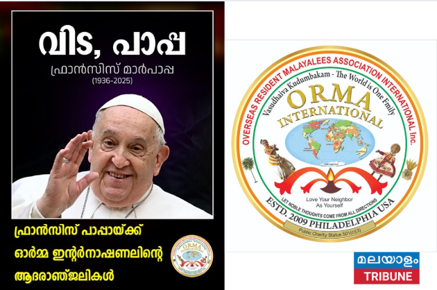 ഈ അവസരത്തിൽ മാർപാപ്പയുടെ വിയോഗത്തിൽ ദുഃഖിതരായിരിക്കുന്ന ലോക ജനതയോട് ഒന്നുചേർന്ന് ഓർമ്മ ഇൻെറർനാഷ്ണ ൽ അതിയായ ദുഃഖവും അനുശോചനവും പ്രാർത്ഥനയുംb അറിയിക്കുന്നതോടൊപ്പം മാർപാപ്പയുടെ ആത്മാവിന് നിത്യശാന്തിയും നേരുന്നു."