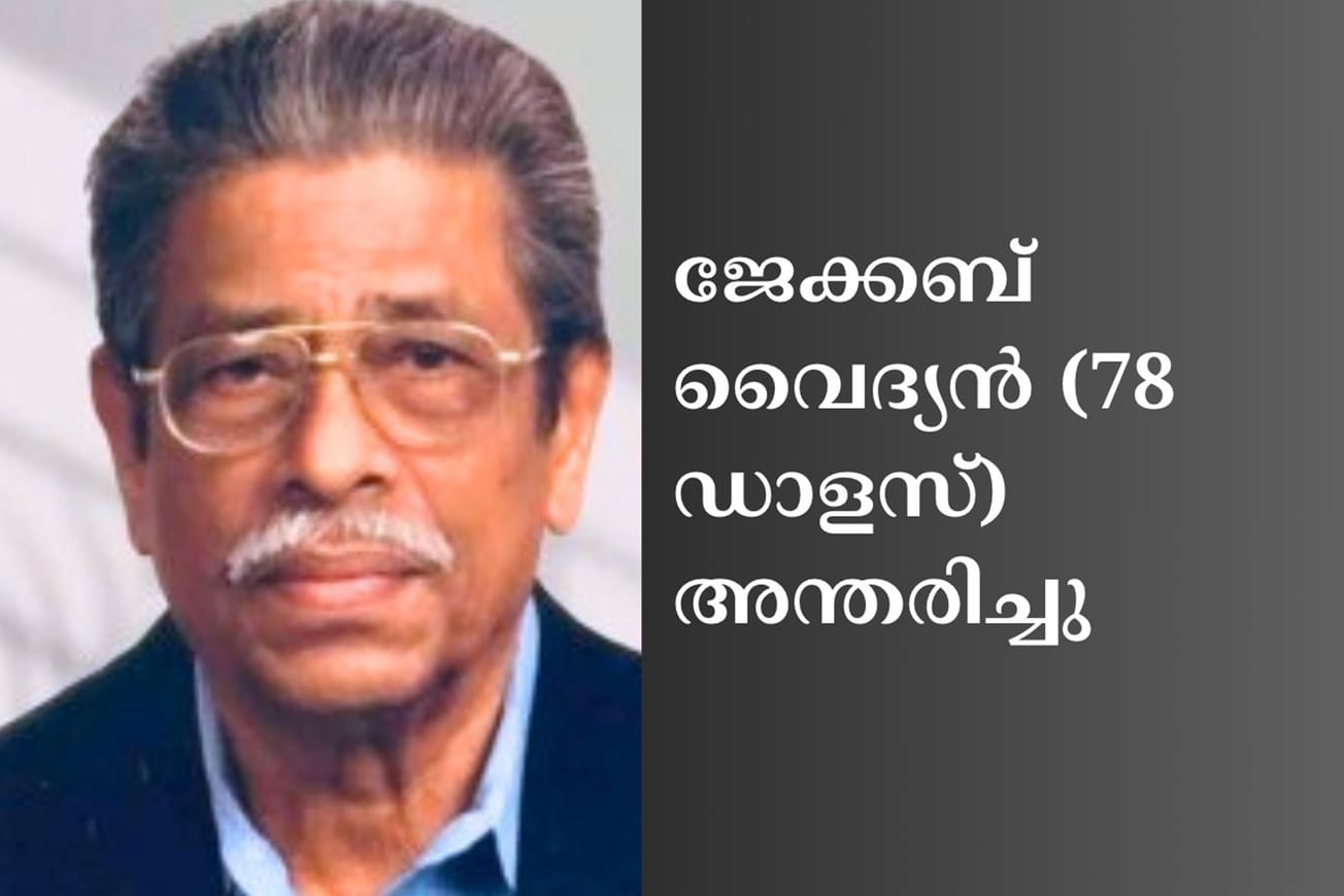 ഡാളസ് : തേവലക്കര കൈതവിളയിൽ വൈദ്യൻ കുടുംബാംഗം തോപ്പിൽ തെക്കതിൽ ടി.ജേക്കബ് വൈദ്യൻ (കുഞ്ഞുമോൻ 78) ഡാളസിൽ അന്തരിച്ചു.