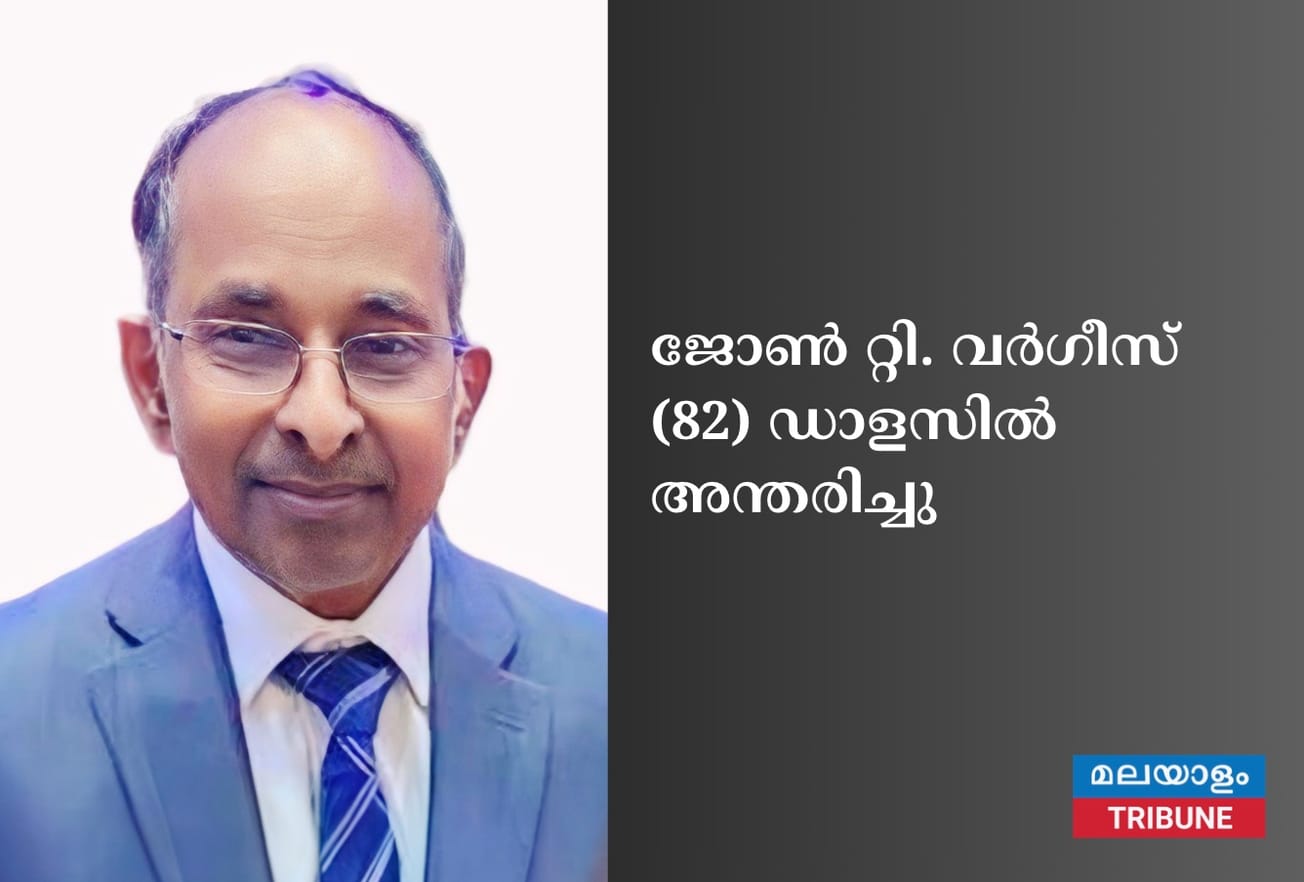 ഡാളസ്: ഡാളസ് ഐപിസി ഹെബ്രോൻ സഭയുടെ സ്ഥാപകരിൽ ഒരാളും ആദ്യകാല അമേരിക്കൻ കുടിയേറ്റക്കാരിൽ ഒരാളായിരുന്ന ജോൺ റ്റി. വർഗീസ് (82) മാർച്ച് 28-ന് അന്തരിച്ചു .