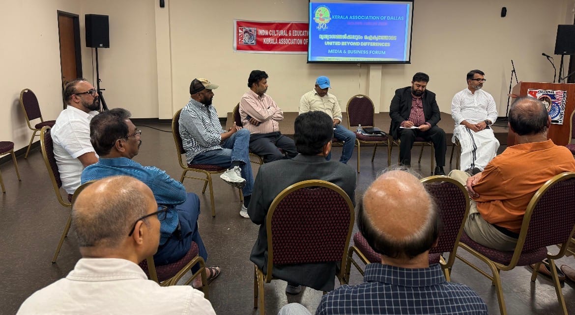 ഗാർലാൻഡ്(ടെക്സസ്): നോർത്ത് അമേരിക്കയിലെ മലയാളി പ്രവാസി സമൂഹത്തിന് പുതിയ ദിശാബോധം നൽകിക്കൊണ്ട് കേരള അസോസിയേഷൻ ഓഫ് ഡാലസ് സംഘടിപ്പിച്ച പ്രഥമ 'മീഡിയ & ബിസിനസ് ഫോറം' ആവേശകരമായ പങ്കാളിത്തത്തോടെ സമാപിച്ചു. ഞായറാഴ്ച വൈകുന്നേരം ഗാർലാൻഡ് ബ്രോഡ്വേ ബുളവാർഡിലെ ഐ.സി.ഇ.സി ബാങ്ക്വറ്റ് ഹാളിൽ നടന്ന സംഗമം, മാധ്യമ പ്രവർത്തകരെയും ബിസിനസ് സംരംഭകരെയും ഒരുപോലെ അണിനിരത്തി പുതിയൊരു ചർച്ചാ സംസ്കാരത്തിന് തുടക്കമിട്ടു.