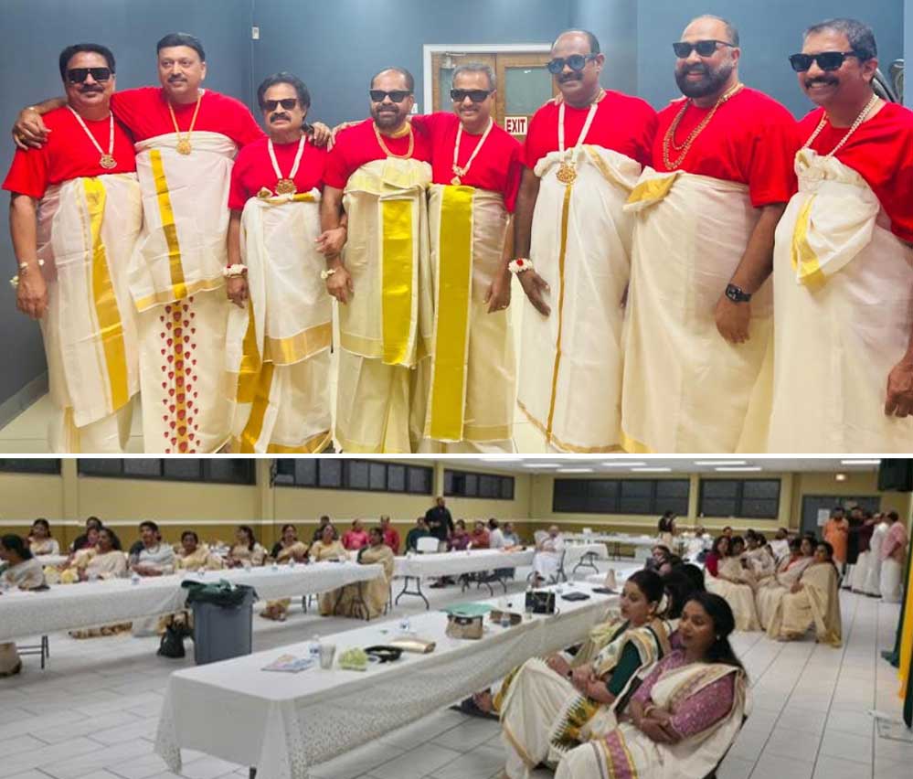 മഹാരാജാ കേറ്ററിംഗ് സര്വീസിന്റെ വിഭവസമൃദ്ധമായ ഓണസദ്യയോടെ പരിപാടികള് ആരംഭിച്ചു. ഫുഡ് കോര്ഡിനേറ്റേഴ്സായ തോമസ് പനയ്ക്കല്, രാജന് തലവടി, ബെന് കുര്യന്, മത്തിയാസ് പുല്ലാപ്പള്ളില് എന്നിവര് സദ്യയ്ക്ക് നേതൃത്വം നല്കി.