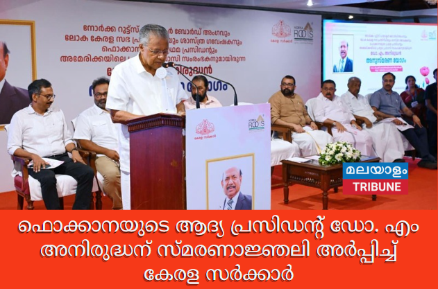 ഫൊക്കാനയുടെ ആദ്യ പ്രസിഡൻ്റ് ഡോ. എം അനിരുദ്ധന് സ്മരണാജ്ഞലി അർപ്പിച്ച് കേരള സർക്കാർ ഒരു പ്രത്യേക അനുസ്മരണ യോഗം തിരുവനന്തപുരം മാസ്കറ്റ് ഹോട്ടലിൽ നടത്തി . ഫൊക്കാന നേതാക്കൾ കേരളത്തിൽ ഉള്ളപ്പോൾ തന്നെ ഈ അനുസ്മരണ യോഗം കേരള സർക്കാർ പ്ലാൻ ചെയ്തതായിരുന്നു , പക്ഷേ മുൻ മുഖ്യമന്ത്രി വി എസ് അച്യുതാനന്ദന്റെ നിര്യാണം മൂലം ഈ അനുസ്മരണം മാറ്റിവെക്കുകയാണ് അന്ന് ഉണ്ടായത് .നോർക്ക റൂട്ട്സ് ഡയറക്ടർ കൂടി ആയിരുന്ന അദ്ദേഹത്തെ ഓർമ്മിക്കാൻ മുഖ്യമന്ത്രി പ്രത്യേക താല്പര്യം പ്രകടിപ്പിച്ച് നടത്തിയ അനുസ്മരണ സമ്മേളനം ആയിരുന്നു മുഖ്യമന്ത്രി പിണറായി വിജയൻ മന്ത്രി വി ശിവൻകുട്ടി , മുൻ മന്ത്രിമാരായ എം. എം. ഹസൻ , കെ. സി. ജോസഫ് , എം. എ യൂസഫലി , നോർക്ക വൈസ് ചെയർമാൻ പി. ശ്രീരാമ കൃഷ്ണൻ , എസ് ഹരി കിഷോർ IAS , ഡോ. അനിരുദ്ധൻ്റെ മകൻ അരുൺ, അജിത്ത് കോളശ്ശേരിയും പ്രവാസി നേതാക്കളും, ഫൊക്കാന നേതാക്കളും, മാധ്യമ പ്രവർത്തകരും പങ്കെടുത്തു.