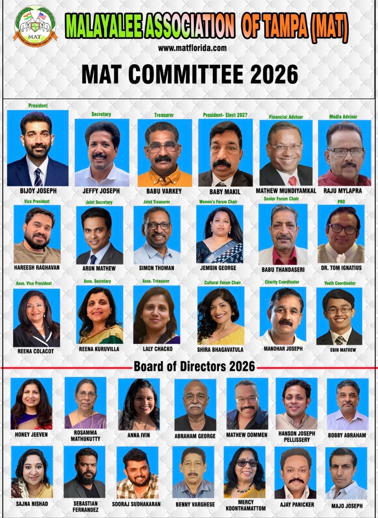 കഴിഞ്ഞ ഒരു ദശാബ്ദമായി ഫ്ളോറിഡായിലെ കലാ-കായിക, സാംസ്ക്കാരിക രംഗങ്ങളില് പല പദ്ധതികളും വിജയകരമായി നടപ്പിലാക്കി, ദേശീയ തലത്തില് ശ്രദ്ധ നേടിയ മലയാളി അസോസിയേഷന് ഓഫ് ടാമ്പാ, കൂടുതല് ജനോപകാരപ്രദമായ പദ്ധതികള് നടപ്പിലാക്കി, തങ്ങളുടെ പ്രവര്ത്തന മണ്ഡലം വിപുലീകരിക്കുമെന്ന് ഭരണസമിതിയെ പ്രതിനിധീകരിച്ച് പ്രസിഡന്റ് ബിജോയ് ജോസഫ് പ്രസാതാവിച്ചു.