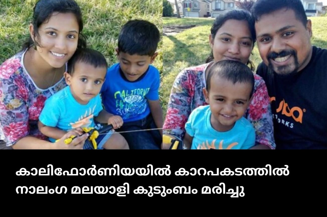 കലിഫോർണിയ: യുഎസിലെ കലിഫോർണിയയിലുള്ള പ്ലസന്റണിൽ മലയാളി കുടുംബം കാറപകടത്തിൽ മരിച്ചു. മലയാളിയായ തരുൺ ജോർജും ഭാര്യയും രണ്ടു കുട്ടികളുമാണ് മരിച്ചത്. സ്റ്റോൺറിഡ്ജ് ഡ്രൈവിന് സമീപമുള്ള ഫൂത്ത്ഹിൽ റോഡിൽ പ്രാദേശിക സമയം ബുധനാഴ്ച രാത്രിയായിരുന്നു അപകടം.