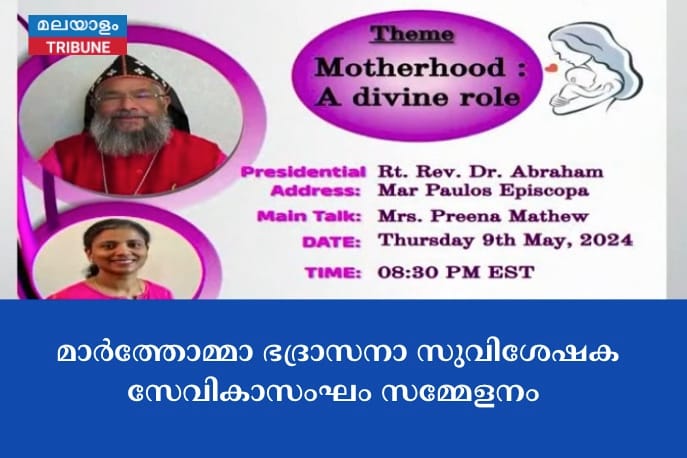 2024 മെയ് 9 വ്യാഴാഴ്ച 08:30 PM EST ആരംഭിക്കുന്ന സൂം സമ്മേളനത്തിൽ നോർത്ത് അമേരിക്ക മാർത്തോമ്മാ ഭദ്രാസനത്തിലെ എല്ലാ വനിതകളും പ്രാർത്ഥനാപൂർവ്വം പങ്കെടുക്കണമെന്ന് സംഘാടകർ അറിയിച്ചു