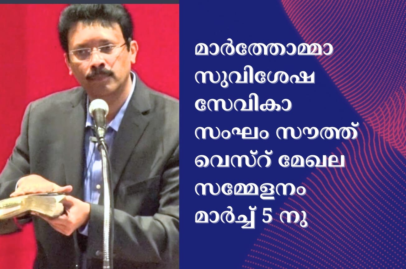 ഡാളസ് : നോർത്ത് അമേരിക്ക മാർത്തോമാ ഭദ്രാസനം സുവിശേഷ സേവികാ സംഘം സൗത്ത് വെസ്റ് മേഖല സമ്മേളനം സംഘടിപ്പിക്കുന്നു .മാർച്ച് 5 ചൊവ്വാഴ്ച, വൈകുന്നേരം 7.30 ന് സൂം ഫ്ലാറ്റുഫോമിൽ ചേരുന്ന സമ്മേളനത്തിൽ സുവിശേഷ പ്രാസംഗീകനും,ബൈബിൾ പണ്ഡിതനുമായ ഡോ വിനോ ജോൺ ഡാനിയേൽ (മെഡിക്കൽ ഡയറക്ടർ, ഫിലാഡൽഫിയ, യുഎസ്എ) മുഖ്യ സന്ദേശം നൽകുന്നു
