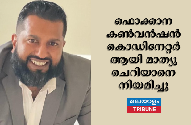 കൺവെൻഷൻ കൊഡിനേറ്റർ ആയി മാത്യു ചെറിയാനെ (മോൻസി ) നിയമിച്ചതിൽ അദ്ദേഹത്തിന് എല്ലാവിധ ആശംസകൾ നേരുന്നതായി എക്സി .വൈസ് പ്രസിഡന്റ് പ്രവീൺ തോമസ് , വൈസ് പ്രസിഡന്റ് വിപിൻ രാജു, ജോയിന്റ് സെക്രട്ടറി മനോജ് ഇടമന, ജോയിന്റ് ട്രഷർ ജോൺ കല്ലോലിക്കൽ, അഡിഷണൽ ജോയിന്റ് സെക്രട്ടറി അപ്പുകുട്ടൻ പിള്ള, അഡിഷണൽ ജോയിന്റ് ട്രഷർ മില്ലി ഫിലിപ്പ് , വിമൻസ് ഫോറം ചെയർപേഴ്സൺ രേവതി പിള്ള, കൺവെൻഷൻ ചെയർ ആൽബർട്ട് കണ്ണമ്പള്ളിൽ എന്നിവർ അറിയിച്ചു.