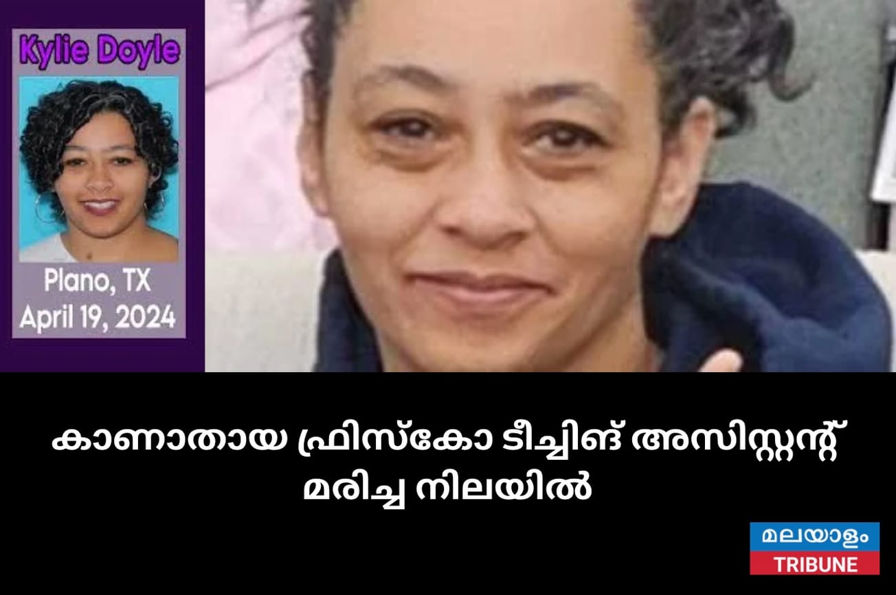 ഫ്രിസ്കോ(ടെക്സസ്) -ഏപ്രിൽ 20 മുതൽ കാണാതായ ഫ്രിസ്കോ അധ്യാപക സഹായിയെ തിങ്കളാഴ്ച മരിച്ച നിലയിൽ കണ്ടെത്തി.