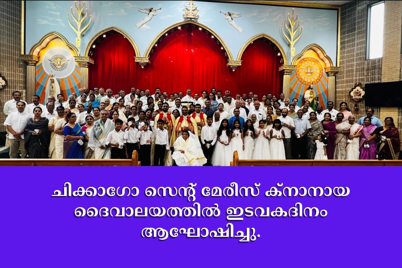 ചിക്കാഗോ: ചിക്കാഗോ സെന്റ് മേരീസ് ക്നാനായ കത്തോലിക്കാ ഇടവകയിൽ ഇടവക ദിനം ആഘോഷിച്ചു. ഇടവക സ്ഥാപിതമായതിന്റെ പതിനാലാം വാർഷികം ഗ്രാൻഡ് പേരന്റ്സ് ഡേയോടൊപ്പം സംയുകതമായാണ് ആഘോഷിച്ചത്. ആഘോഷങ്ങളുടെ ഭാഗമായി അർപ്പിക്കപ്പെട്ട കൃതജ്ഞതാ ബലിക്ക് ക്നാനായ റീജിയൻ ഡയറക്ടർ ഫാ. തോമസ് മുളവനാൽ മുഖ്യ കാർമ്മികത്വം വഹിച്ചു. വികാരി ഫാ. സിജു മുടക്കോടിൽ, ഫാ. ജിതിൻ വല്ലാർകാട്ടിൽ എന്നിവർ സഹ കാർമ്മികരായിരുന്നു.