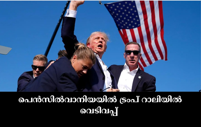 പെൻസിൽവാനിയയിൽ ട്രംപ് റാലിയിൽ വെടിവപ്പ്. ശനിയാഴ്ച പെൻസിൽവാനിയയിലെ ബട്ലറിൽ നടന്ന റാലിയിൽ വെടിയൊച്ചകൾ കേട്ടതിനാൽ മുൻ പ്രസിഡൻ്റ് ഡൊണാൾഡ് ട്രംപ് സീക്രട്ട് സർവീസ് ഏജൻ്റുമാരാൽ വലയുകയും സ്റ്റേജിൽ നിന്ന് നീക്കം ചെയ്തു.