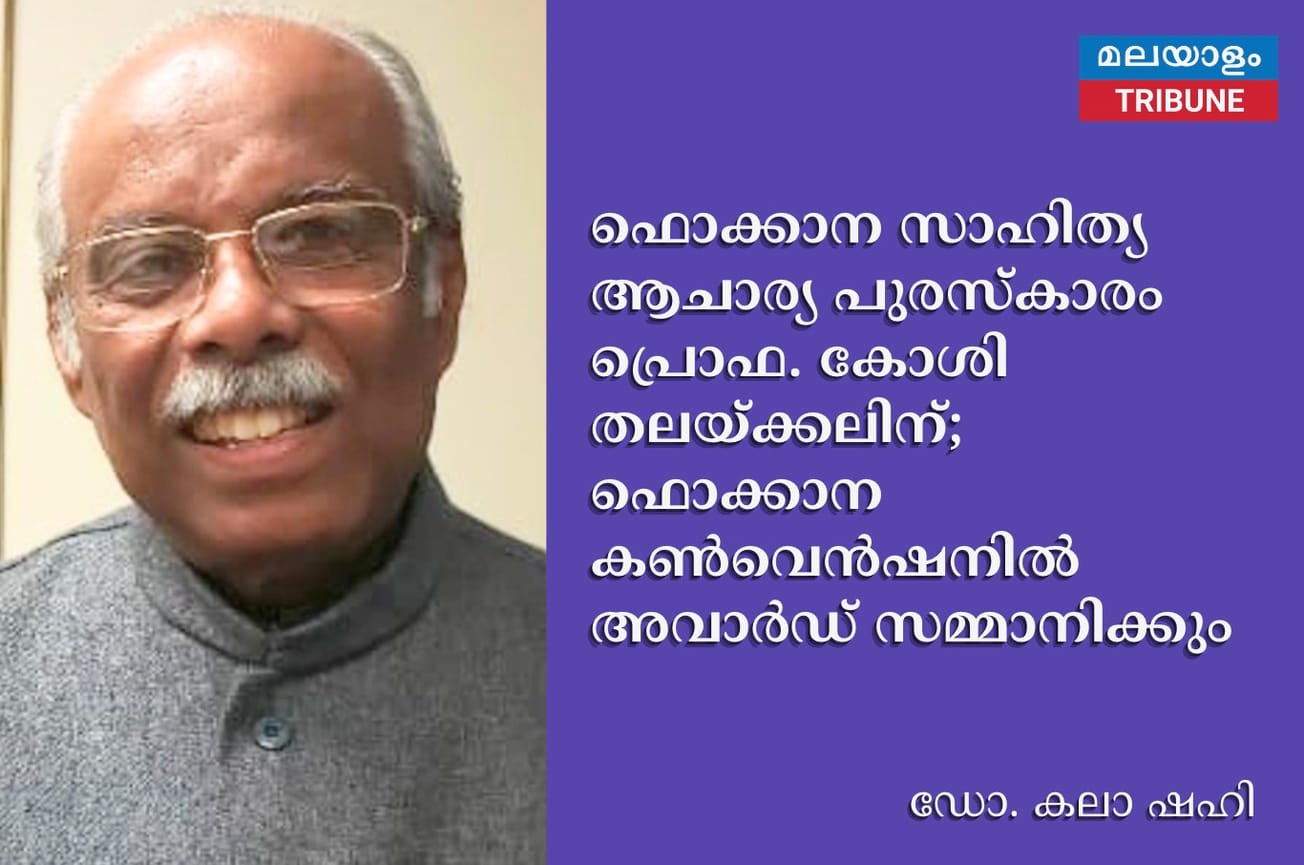 ഫൊക്കാന കണ്വെന്ഷനോടനുബന്ധിച്ച് നല്കുന്ന പുരസ്കാരങ്ങളില് സാഹിത്യ ആചാര്യ അവാര്ഡാണ് അമേരിക്കന് മലയാളികള്ക്ക് അഭിമാനമായ പ്രൊഫ. കോശി തലയ്ക്കലിന് സമ്മാനിക്കുന്നത്. മുപ്പത്തിഒന്ന് വര്ഷം മലയാള അദ്ധ്യാപകൻ, സ്തുത്യര്ഹമായ മലയാള സാഹിത്യ പ്രവര്ത്തനം, അനേക വര്ഷങ്ങളിലെ ഫൊക്കാനയുടെ സാഹിത്യ പുരസ്കാരങ്ങളുടെ ജഡ്ജിങ് പാനല് ചെയര്മാൻ, അനേകം കൃതികളുടെ രചയിതാവ് എന്നിവ പരിഗണിച്ചാണ് പ്രൊഫ. കോശി തലയ്ക്കലിന് പുരസ്കാരം നല്കുന്നതെന്ന് ഫൊക്കാന ഭാരവാഹികള് അറിയിച്ചു.