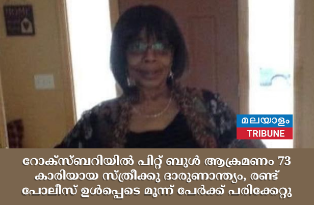 ബോസ്റ്റൺ :തിങ്കളാഴ്ച ഉച്ചയ്ക്ക് ബോസ്റ്റണിലെ റോക്സ്ബറി പരിസരത്ത് പിറ്റ് ബുൾ കടിച്ച 73 കാരിയായ സ്ത്രീ മരിച്ചുവെന്ന് ചൊവ്വാഴ്ച രാവിലെ പോലീസ് അറിയിച്ചു.
