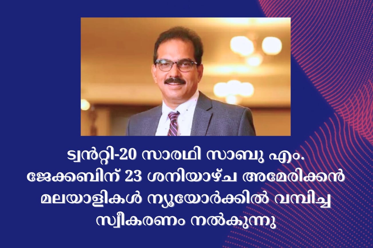 ഈ അവസരത്തിലാണ് ന്യൂയോർക്ക് ലോങ്ങ് ഐലൻഡിലുള്ള അമേരിക്കൻ മലയാളികൾ സാബു എം. ജേക്കബിന് മാർച്ച് 23 ശനിയാഴ്ച വൈകിട്ട് 5:30-ന് എൽമോണ്ടിലുള്ള കേരളാ സെന്ററിൽ (Kerala Center, 1824 Fairfax Street, Elmont, NY 11003) സ്വീകരണം നൽകുന്നത്. പ്രസ്തുത സ്വീകരണ യോഗത്തിലേക്ക് കേരളത്തെ സ്നേഹിക്കുന്ന നല്ലവരായ എല്ലാ മലയാളികളും എത്തിച്ചേരണമെന്ന് സംഘാടകർ അറിയിക്കുന്നു. സ്വീകരണ യോഗം സംബന്ധിച്ചുള്ള വിശദ വിവരങ്ങൾ അടുത്ത ദിവസങ്ങളിൽ അറിയിക്കുന്നതാണ്.