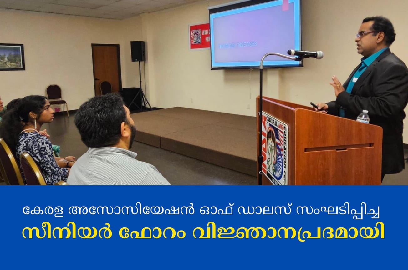 ഗാർലൻഡ് (ഡാളസ് ): കേരള അസോസിയേഷൻ ഓഫ് ഡാലസിന്റെ ആഭിമുഖ്യത്തിൽ ഏപ്രിൽ 27 ശനിയാഴ്ച സംഘടിപ്പിച്ച സീനിയർ ഫോറം വിജ്ഞാനപ്രദമായി“ ശനിയാഴ്ച രാവിലെ 10 30 മുതൽ പരിപാടികൾ ആരംഭിച്ചു.