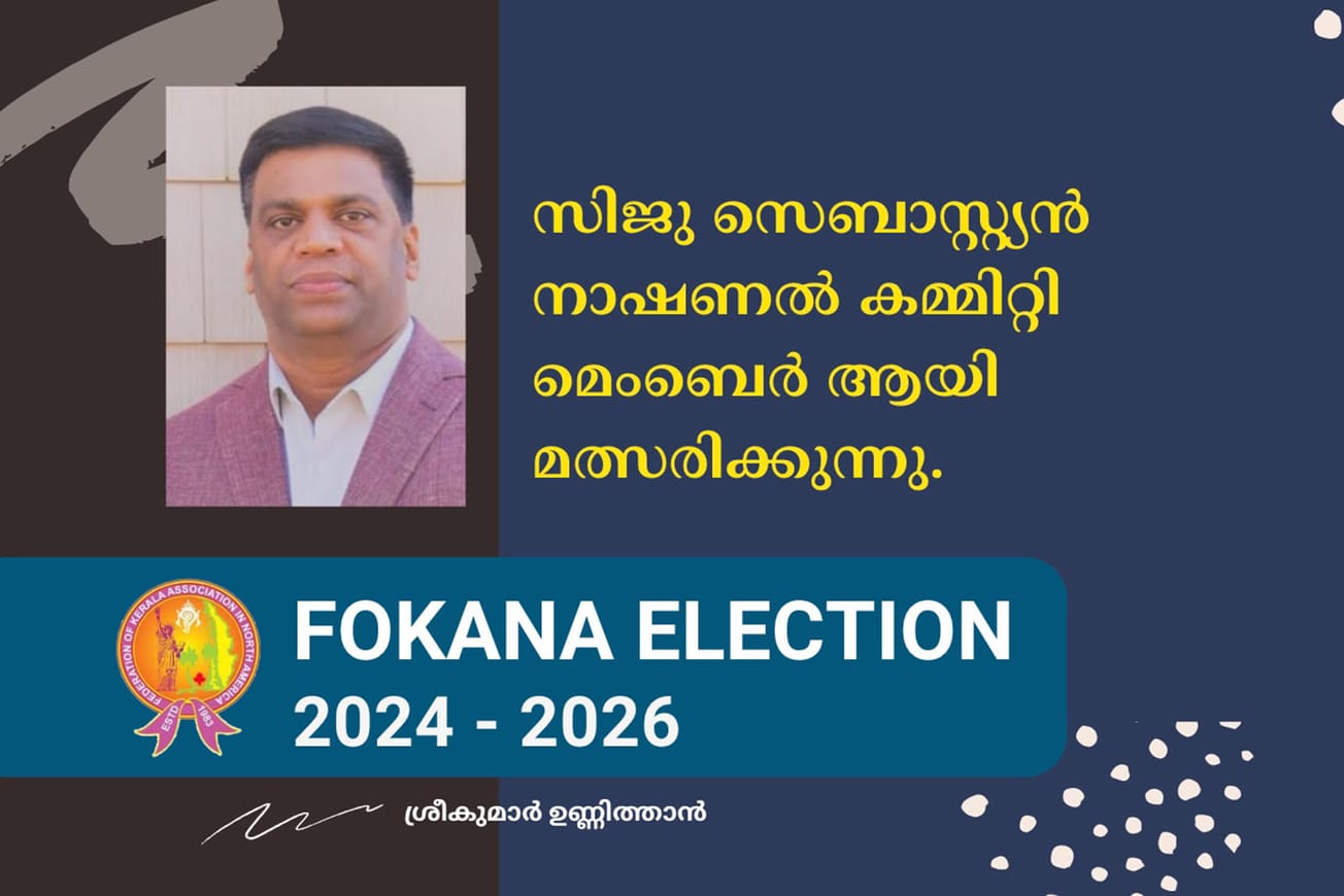 ന്യൂ യോർക്ക് : ഫൊക്കാനയുടെ 2024-2026 ഭരണസമിതിയിൽ നാഷണൽ കമ്മിറ്റി മെംബെർ ആയി ന്യൂ യോർക്കിലെ സാമൂഹ്യ- സാംസ്കാരിക-രാഷ്ട്രീയ-സാമുദായിക മേഖലകളിൽ തിളങ്ങി നിൽക്കുന്ന സിജു സെബാസ്റ്റ്യൻ (പുതുശ്ശേരി )നാഷണൽ കമ്മിറ്റി മെംബെർ ആയി മത്സരിക്കുന്നു. ഫൊക്കാനയുടെ ഇപ്പോഴത്തെ നാഷണൽ കമ്മിറ്റി മെംബെർ ആയും പ്രവർത്തിക്കുന്ന സിജു സജിമോൻ ആന്റണി നേതൃത്വം നൽകുന്ന ഡ്രീം ടീമിന്റെ ഭാഗമായാണ് മത്സരിക്കുന്നത്.
